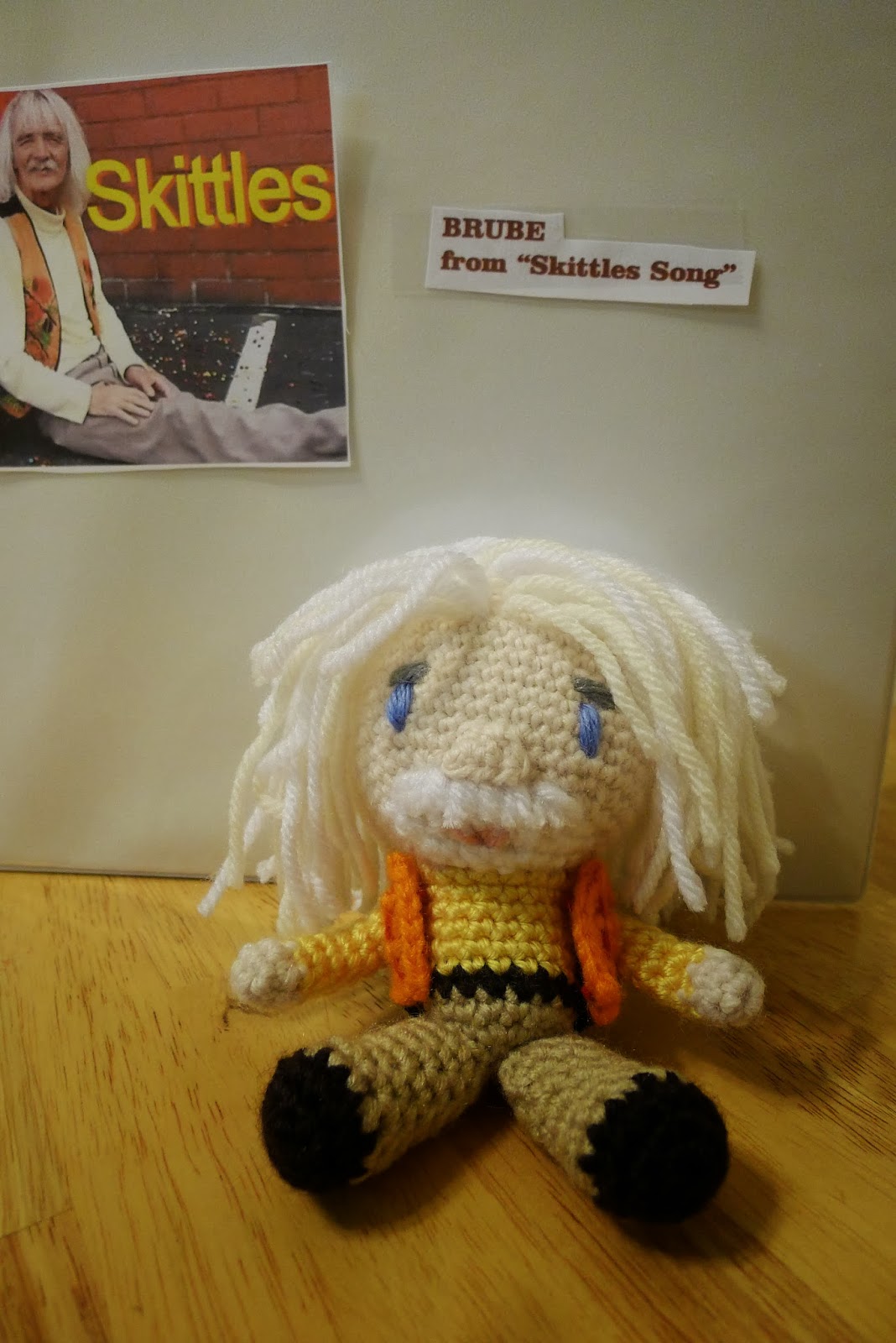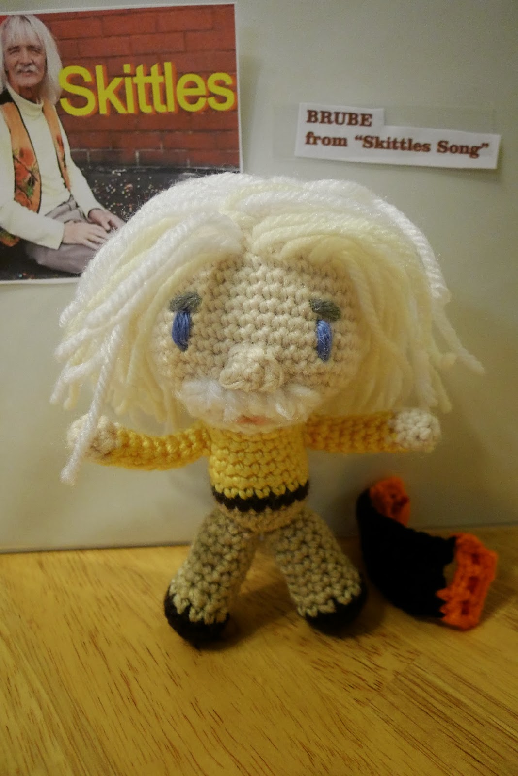 So I got a lot of great feedback on the Brube Doll, based on Brube played by Graham Mackie Sr. in the "Skittles Song" video on Youtube!  This video was the creation of Nathan Barnatt in which he plays Skittle's fan, Trale Lewous!  This pattern may be messy and has only been tested by me, so if anything is confusing, feel free to ask or help correct my pattern! Thanks, Natasha (mnopxs2).