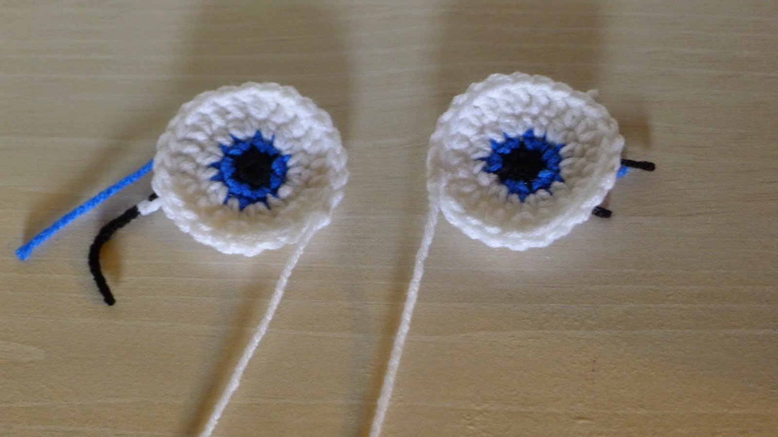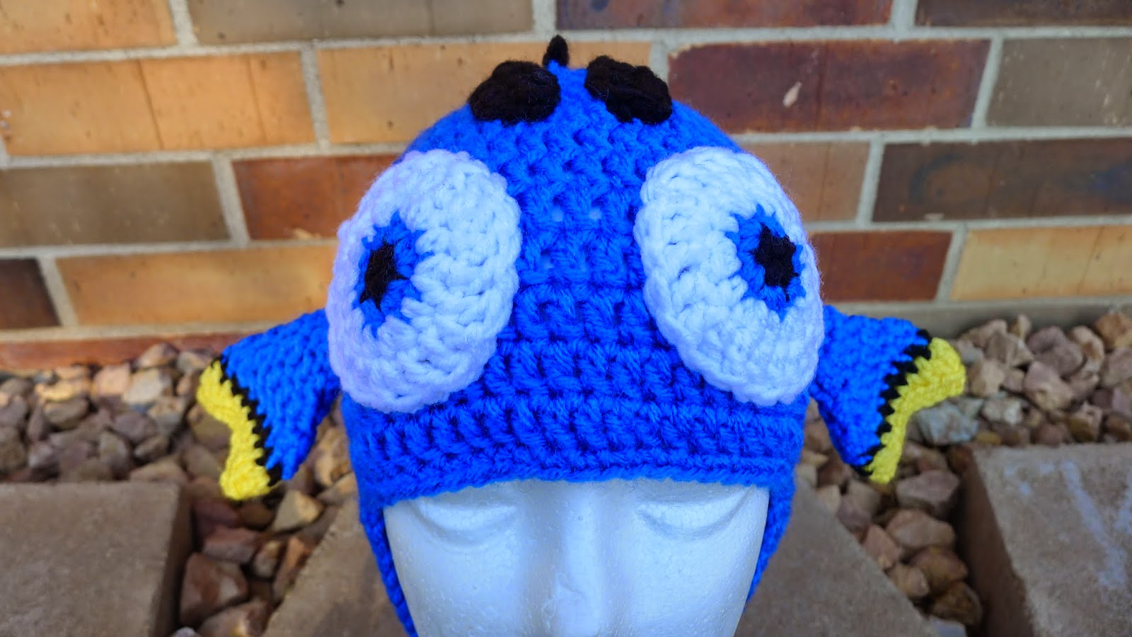 Rnd 1: In Blue, Magic Ring, Ch 2, 8 DC in magic ring, sl st in first DC, ch 2 (leave a long tail out backwards through ring to attach to hat)