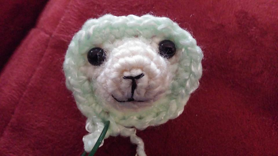 I added my eyes in the middle of the HDC group on each side.  After that I used a sewing needle and added some black thread to make a nose and mouth.